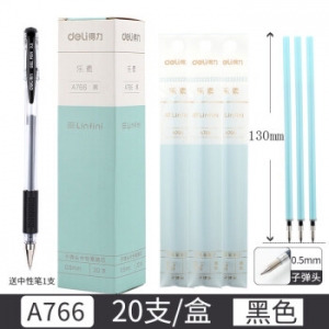得力 A766 中性笔替芯0.5mm子弹头(黑) 20支/盒 (计价单位:支)